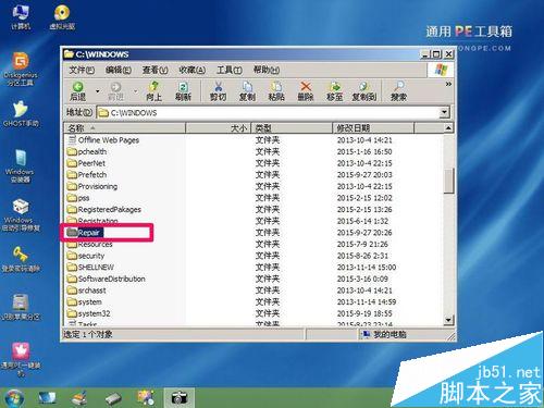 3、然后在C盘下面,找到Windows文件夹下的Repair这个文件夹,进入这个文件夹。