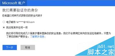 在找回密码的页面中,不会出现提示绑定的安全邮箱的,或是自己的安全邮箱给忘记了,那就需要选择“我没有其中任何一项”——下一步;