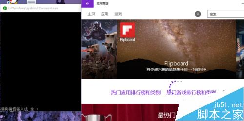 2、接下来,Windows应用商店还自动弹出,同时弹出的还有命令行菜单窗口,我们仅仅需要耐心的等待程序运行结束即可。