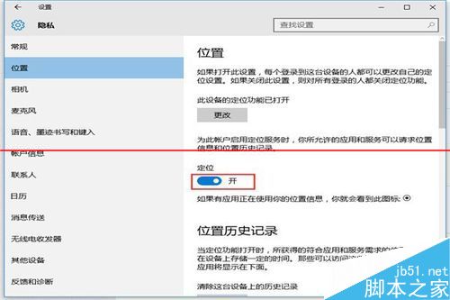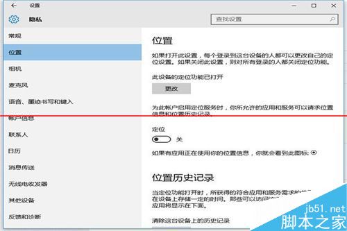3、在打开的设置功能中,看右边面板,定位功能是关闭的