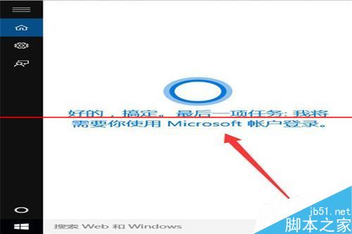 3、登陆以后是小娜的界面,在下面搜索框输入“召唤小冰”或者点“语音”语音语音录入“召唤小冰”确认。