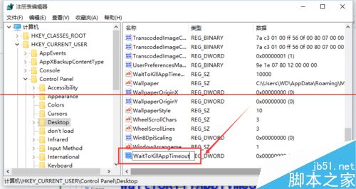 7、鼠标左键双击WaitToKillAppTimeout文件,我的数值数据默认为10000,将其改为0,保存修改后退出即可。