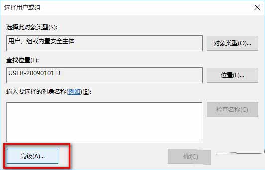 在选择用户或组的对话框中点击:高级(A);