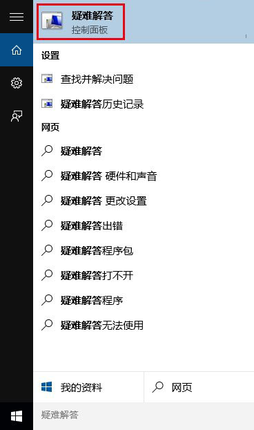 三、使用“疑难解答”1、在Cortana搜索栏输入“疑难解答”,选择第一项
