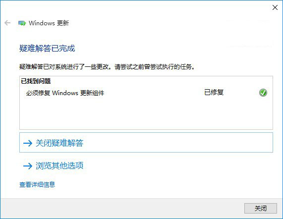 4、Win10会自动搜索问题并尝试解决,完成之后,会给出相应结果(上图只是举例,实际结果可能不同)