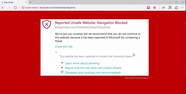 SmartScreen:这是对抗在线钓鱼攻击、网站尝试偷窃你的身份和隐私数据的第一道防线。使用基于云端的信誉系统,SmartScreen访问网站甚至是软件的时候会向用户提示潜在的威胁。
