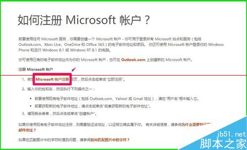 2、点击进入以后,我们会看到如何注册Micrososft帐户?,点击:Micrososft帐户注册;