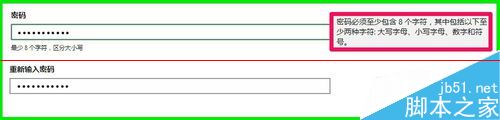 7、密码:密码必须至少包含8个字符,其中包括以下至少两种字符:大写字母、小写字母、数字和符号。