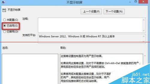 3、双击右侧的“不显示锁屏”选项,打开后配置为“已启用”;