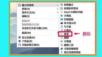 8、退出注册表编辑器,右键点击桌面空白处,我们可见,便笺菜单已经从右键菜单中删除。