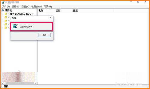 4、我们点击查找下一个后,系统进行搜索:正在搜索注册表;