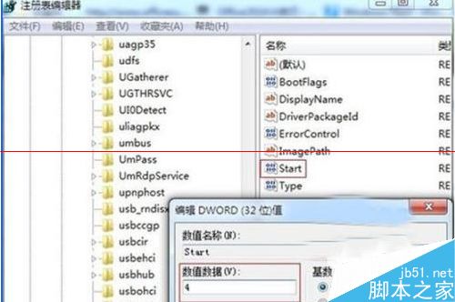 4、修改完后重启电脑生效,如果想要恢复的话,再按照以上方法在注册表找到“Start”双击将数值“4”修改回为“3”即可。关于win7系统纯净版下隐藏usb设备的技巧就跟大家分享到这边了,感兴趣的朋友们就可以通过上面的方法将usb设备隐藏掉了哦,赶紧试试吧。