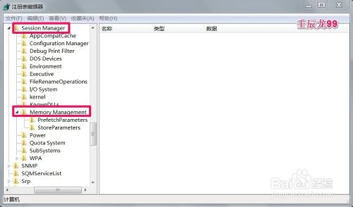 3、在Control展开项中再依次展开:Session ManagerMemory Management;