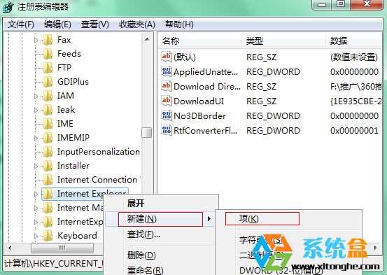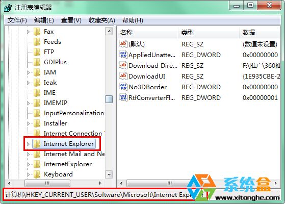 2、然后在注册表中定位到以下项(可以一个一个展开):HKEY_CURRENT_USERSoftwareMicrosoftInternet Explorer;