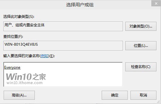 需要注意的是,您可以去控制面板的用户账户里确认准确名称,输入之后点击旁边的“检查”按钮确认是否输入的用户名存在:存在的话会自动排版为准确名称(含下划线),不存在或者输入有误会给出提示。如果是您自己的电脑,怕麻烦的话可直接输入“Everyone”,让这个系统的所有用户得到权限(方便的同时安全性会降低,不过对于预览版系统不必太在意吧)。