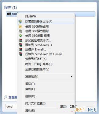 首先,单击开始菜单,在搜索框里输入CMD,并右键单击CMD,在弹出的菜单中单击“以管理员身份运行”,打开CMD。