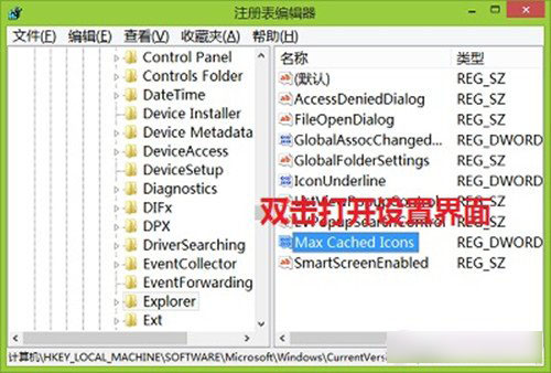 第五步、我们在查询结果中,可以看到“Max Cached Icons”已经自动选中,这是双击它。