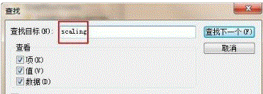 步骤四:在Configuration上点击右键,并选择查找,输入Scaling,点击“查找下一个”;