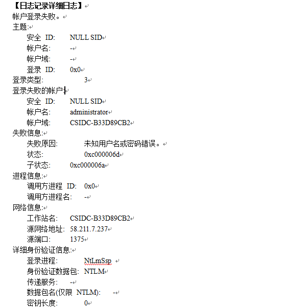 2.在日志》网络信息》源网络地址: 58.211.7.237 查到尝试登录IP