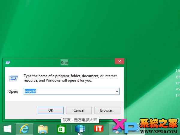 1、按下Win键+R键打开运行窗口,输入 regedit 然后按回车键(或点确定),打开Windows 8.1 的注册表编辑器,如下图所示——
