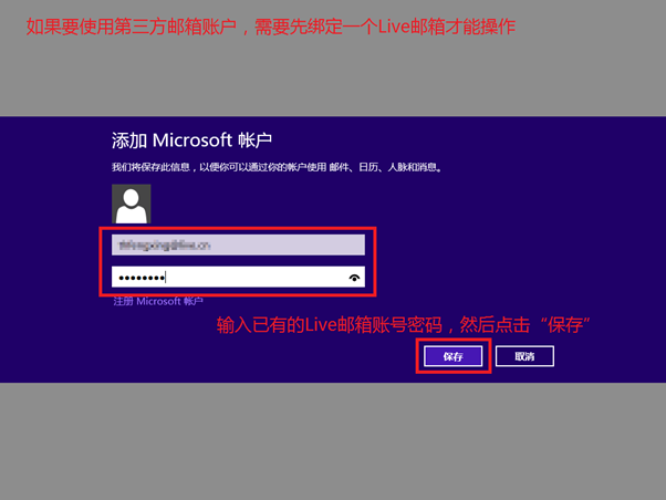 如果我们需要使用非微软的邮箱(比如126、163),首先也需要绑定一个微软邮箱(Live,outlook),如下图先进行微软邮箱的登录;