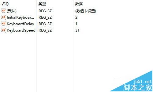 4、找到注册表编辑器右边最下面的keyboardspeed,双击。