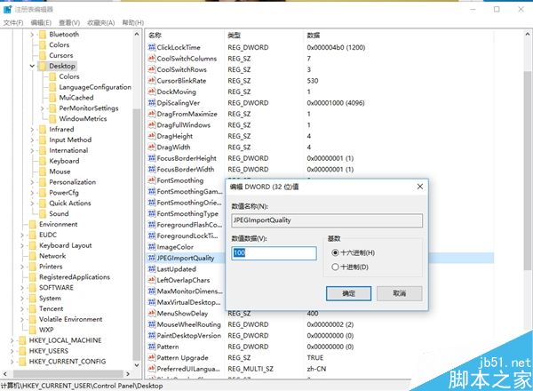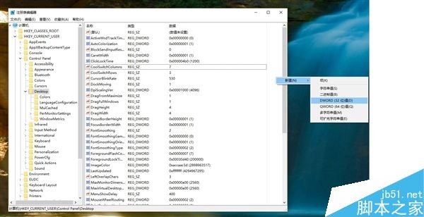 2.定位到 HKEY_CURRENT_USERControl PanelDesktop(Build 14942预览版及更新用户可直接粘贴到地址栏)