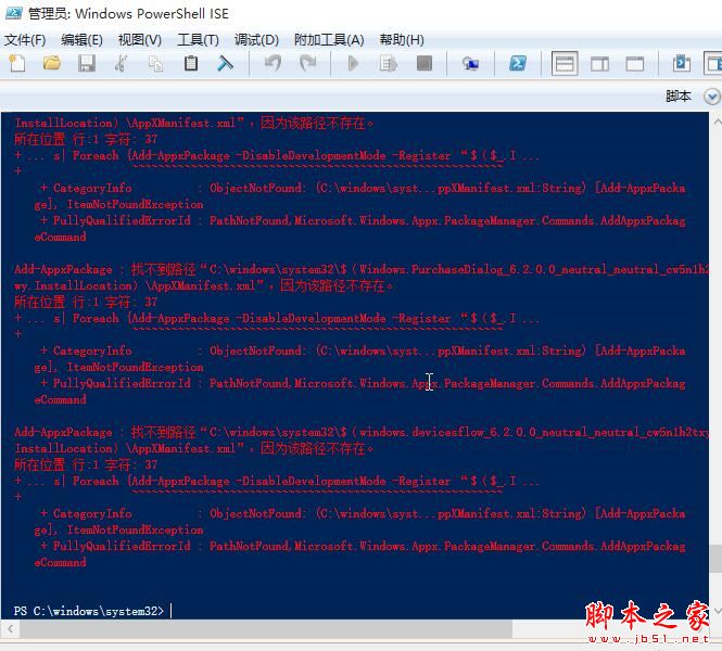 2、在窗口中输入:Get-AppxPackage -AllUsers| Foreach {Add-AppxPackage -DisableDevelopmentMode -Register “$($_.InstallLocation)AppXManifest.xml”},如图所示: