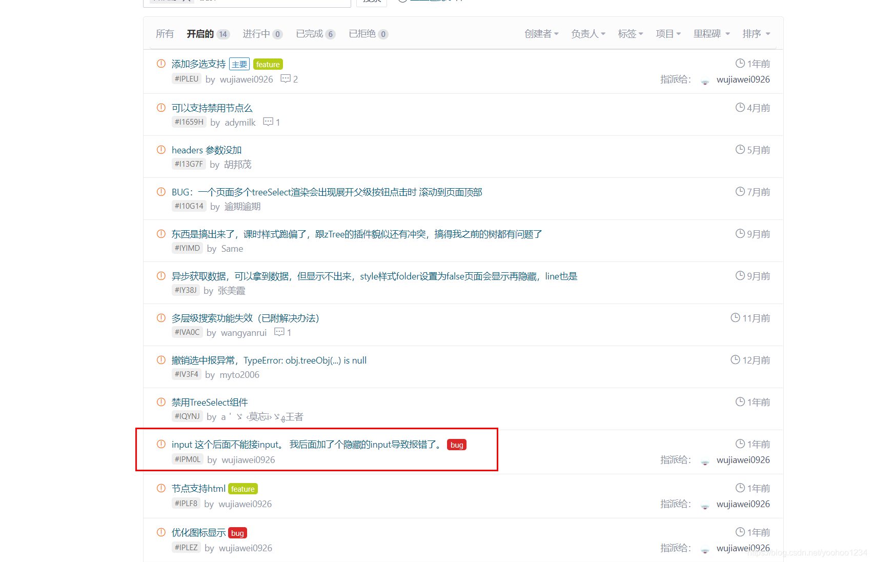 我是如何发现是这个问题的呢,我找到这个组件的下载地址:https://gitee.com/wujiawei0926/treeselect(码云),看他的Issues,最后发现如下图: