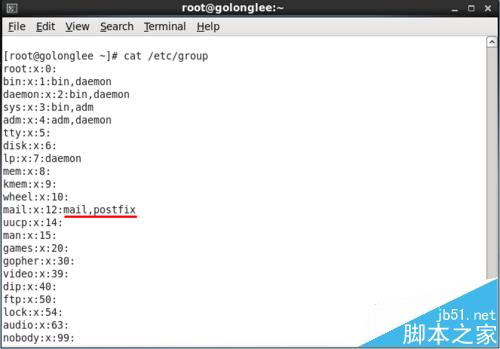 例如,默认的mail组中有2个用户mail和postfix