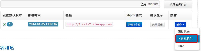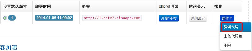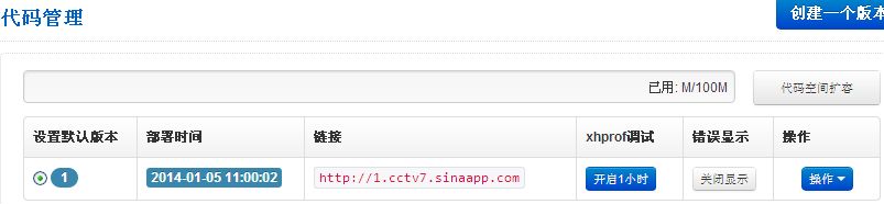 到这里,就成功创建了一个域名URL为 http://cctv7.sinaapp.com/ 的应用了。