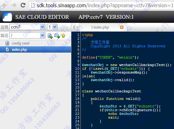 我们使用SAE新浪云计算平台作为服务器资源,并且申请PHP环境+MySQL数据库作为程序运行环境。