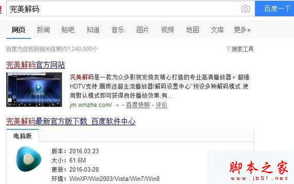 1、打开360软件管家或打开网页没搜索“完美解码”;