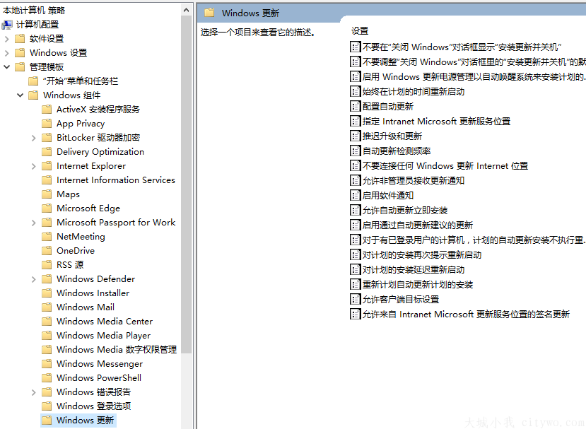 1.找到计算机配置→管理模板→Windows组件→Windows更新