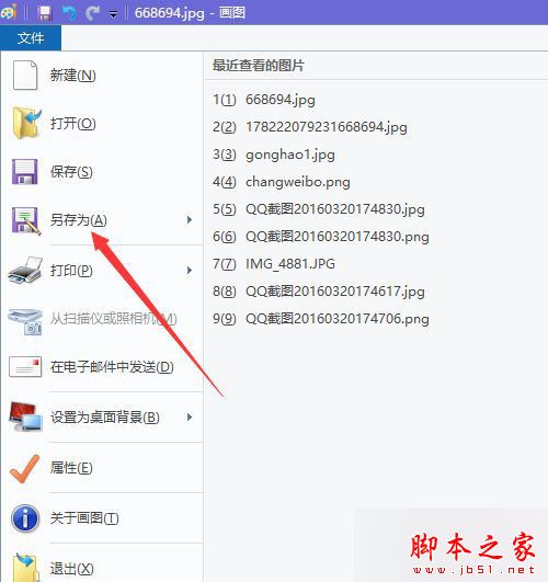 3、然后打开画图,找到我们正在编辑的文件,打开文件——另存为。