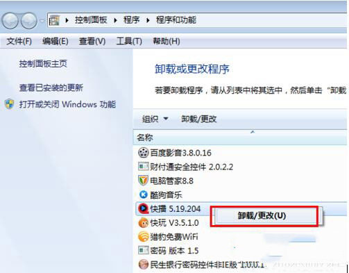 2、找到当前系统安装的新版本的快播5,当然您也可以直接在 开始菜单---所有程序---找到快播的卸载快播也可以。