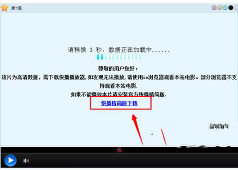 4、除此之外,有的网站如果提示快播不能点播的时候。也一般有一个快播精简版下载地址,直接点击下载安装即可。