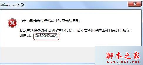 win7使用系统自带备份和还原功能时出现提示0X80042302,该如何解决呢?下面跟随脚本之家的小编脚步看看具体解决方法吧。