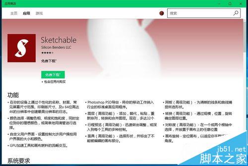 6、在Windows墨迹工作区点击【建议的应用】下的项目,可以打开【应用商店】,下载和安装一些软件程序,如:Sketchable(创意绘图);