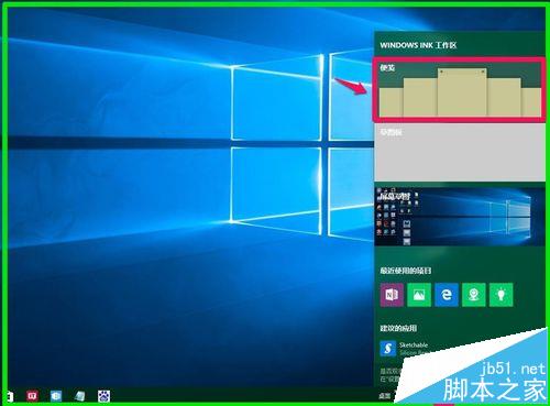2、点击Windows墨迹工作区中的便笺,可以打开系统内置的便笺功能;