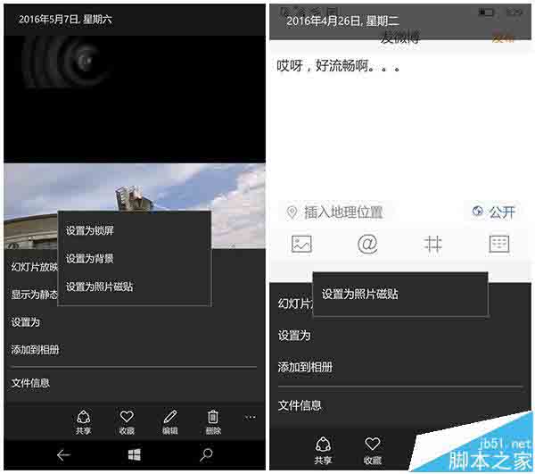 现在用户只能到系统设置——个性化中,进行设置锁屏和背景,相比在照片相册中直接设置有些麻烦,不过你想要系统内置壁纸,那么只能到系统设置个性化中选择。希望微软在下一个Win10 Mobile年度更新测试版本中解决该问题。