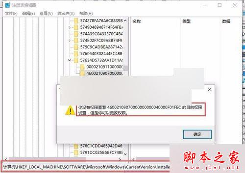 4、通过出错提示找到相应的项,点击发现没有权限;