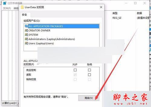 5、我们来对UserData项的权限进行设置,在右键菜单中点击 权限;