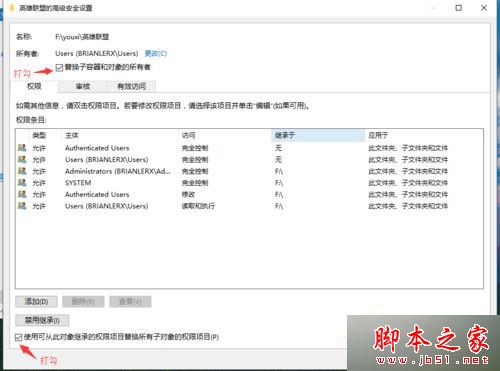 4、勾选“替换紫容器和对象的所有者”,如下所示: