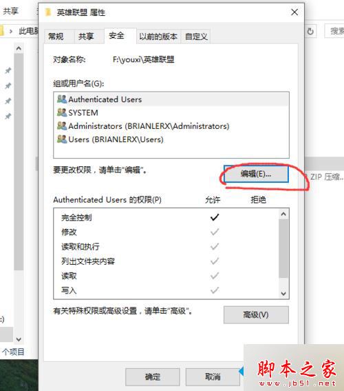 5、选择Authenticated Users,点击“编辑”,如下所示: