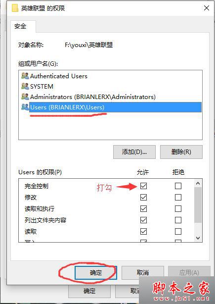 6、勾选“完全控制”,确定保存后,权限设置就完成了。