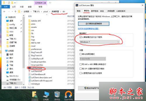 7、【附加步骤】我是用TGP腾讯游戏助手打开游戏的,根据以上操作后发现无法进入游戏大厅,游戏大厅那个程序显示未响应状态。如何你出现这种状况,可以参照以下方法解决,找到英雄联盟安装目录-Air-LolClient.exe,按照下图操作即可。