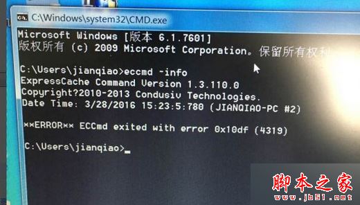Win7系统可通过命令提示符打开相对应的程序路径,但用户在命令提示符下输入eccmd -info命令或eccmd.exe -info命令 执行出现错误,如下面错误提示,也不知道怎么办?针对此问题,下面脚本之家的小编和大家分享具体的解决方法。