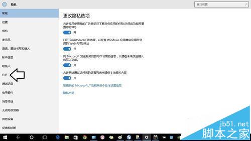 5、隐私→日历。