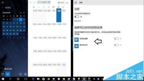 6、允许应用访问我的日历,开启一下(如果已经开启了,再关闭一下,再开启即可)。